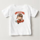 Esta camiseta personalizada presenta un bebé piloto de estilo de dibujos animados regordete volando un pequeño avión rojo vintage. El pequeño piloto adorable lleva un sombrero de aviador marrón clásico y gafas. Una pancarta roja se encuentra sobre el diseño con el nombre de tu hijo.