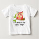 Un adorable diseño de búho en futuras camisetas de la hermana mayor, enterizos, trajes de ropa, trajes de tutu, sudaderas, gorras, tés de manga larga, vestidos sin mangas, camisetas y vestidos espumosos, y otras prendas de vestir que la hermana seguramente amará. Presenta un búho colorido de naranja, crema y rosado con puntos blancos sentados en una rama arbolada con texto que dice ¡Voy a ser una Gran Hermana!