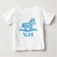 Cute Blue Rocking Horse Nombre Bebé Camiseta Bebé. Un lindo dibujo de un caballo mecedor de color azul, genial para un niño. Personaliza con tu nombre.