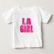 Diseño tipográfico de Chica de LA con hojas de palma. Camiseta rosa de Los Ángeles.
