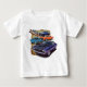 Esta es una representación de un coche clásico creado con tiza y marcadores con el fondo agregado digitalmente.