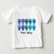 2 filas de calaveras de punk gótico, adorables y muy coloridas, en tonos azules sobre una camiseta blanca para el bebé. La camisa y el texto son personalizable. Hay muchos estilos de camisa disponibles.