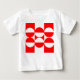 Esta camiseta de bebé tiene un diseño Bauhaus de cuadrados y círculos en rojo y blanco.