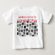 Esta camiseta de bebé tiene un diseño geométrico de cuadrados en negro y tonos grises dispersos por todo el mundo con sus contornos.