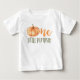 Celebra el primer cumpleaños de tu pequeño con esta adorable camiseta de bebé One Little Pumpkin. El diseño presenta una calabaza de acuarela naranja con la frase "One Little Pumpkin" en letras naranjas y verdes. Personaliza la camiseta con texto personalizado o déjala en blanco para un diseño perfecto para fiestas de cumpleaños con temática de otoño y Halloween.