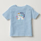 Una camiseta de cumpleaños personalizada con un nombre y edad diseñada con 2 adorables unicornios bailarines con colas y crines brillantes y coloridas. Un arcoíris colorido con nubes a cada lado sobre sus cabezas. Otros elementos incluyen una pequeña flor, un corazón y algunas estrellas.