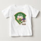 Esta adorable Camiseta de Cumpleaños para Bebé presenta un perrito adorable que lleva una gorra de béisbol y está listo para jugar pelota. El fondo es un campo de béisbol con un diseño de explosión de estrellas azules. Personalice con un nombre y/o cualquier texto que desee agregar.