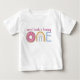 Personaliza la camiseta del primer cumpleaños de tu bebé con su nombre. Un "uno" caprichoso y lindo hecho de un arcoíris y donut.