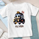 Esta camiseta de bebé personalizada presenta un lindo y caprichoso taxi negro londinense