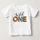 Camiseta de cumpleaños número 1 con el dicho "salvaje" en diferentes estampados de animales. ¡Puedes personalizar esta camiseta añadiendo el nombre del niño debajo!