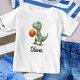 Esta adorable camiseta personalizada para niños pequeños presenta un T-Rex jugando baloncesto de manera caprichosamente encantadora. Personalízala con el nombre de tu hijo para un regalo único y especial. Este diseño juguetón seguramente traerá sonrisas a donde quiera que vayas.