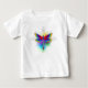 Luminosa, arco iris, libélula poligonal sobre fondo blanco, pintada con acuarela.