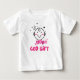 El diseño presenta adornos con estrellas brillantes, y un suave halo rodea la cabeza del bebé, evocando una sensación de asombro e inocencia.