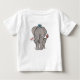 Un dulce ilustracion de un elefante y un bebé. El bebé sostiene un quequito cubierto de rociadas y ambos llevan coronas.
