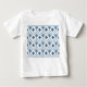 Esta camiseta para bebés tiene un diseño art deco de diamantes polvorientos azules con líneas diagonales y diamantes de color azul oscuro sobre un campo de blanco.