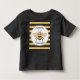 Camiseta de cumpleaños moderna y linda con rayas negras y amarillas con una hermosa ilustración de una abeja.