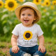 Este tee de bebé presenta un girasol amarillo y el texto "El pequeño sol de mamá" compra como se muestra o crea su propia camiseta de bebé editando esta plantilla.