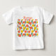 Esta camiseta de bebé tiene un diseño escandinavo de flor y hojas dispersas por los corales, el oro y el verde salado. Mantener el texto, cambiarlo o eliminarlo completamente.