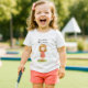 This white toddler-sized T-shirt showcases a watercolor-illustrated image of a young female golfer. It is specifically designed to inspire aspiring young female golfers, making it ideal for fostering their enthusiasm and passion for the sport.