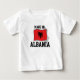 Gemaakt en Albanië als afbeelding es de Albanese vlag te zien daar achter de kaart van de vorm van het land. Kleuren: zwart en rood.