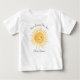 This adorable baby T-shirt features a yellow smiling sun and the phrase "Here Comes The Son" in stylish script typography. It is easily customizable. Original Watercolor © Michele Davies.