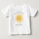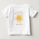This adorable baby T-shirt features a yellow smiling sun and the phrase "Here Comes The Sun" in stylish script typography. It is easily customizable. Original Watercolor © Michele Davies.