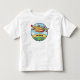 Esta camiseta personalizada para niños muestra un avión de personalizado amarillo y rojo que lucha contra incendios sobre un alegre bosque de árboles sonrientes dentro de una sorprendente placa circular.