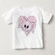 El cráneo de gatito rosado y los huesos cruzados se colocan sobre un corazón con estampado rosado que es tan dulce y giratorio.