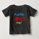 La tía me ama camisetas, tés de manga larga, camisetas raglan, trajes-cama, trajes-carroza de fútbol, trajes-carroza, trajes-carroza orgánicos, trajes-sin-mangas, trajes-rublos, camisetas-espuma, gorras, camisetas-negras, sudaderas-pullover, rompers y más para bebés, niños y niños con un azul rojo, y el texto dorado y el diseño del corazón que dice Tía me ama, ¡genial para el chico o chica de la tía!