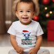 Esta es una adorable camiseta de un niño pequeño Navidad con la cara de una llama adorable con un sombrero de Santa con un borde de Navidades y texto. El texto de la camiseta puede ser personalizado con el suyo o el izquierdo tal como está.