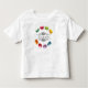 Camiseta de bebé con un diseño acuarela elegante de macarones dulces y deliciosos franceses en una formación circular. En el centro, un marco decorativo con un nombre personalizado. Los macarones están pintados con colores agradables como rosa, azul, verde limón, amarillo soleado, rojo, violeta, etc.