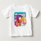 Esta camiseta para bebés tiene un diseño moderno de mediados de siglo de rectángulos retro y starburst en colores retro brillantes.