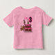 Un lindo diseño de 3 años en camisetas de primer cumpleaños, trajes de ropa, tarjetas, franqueo, imanes y otros artículos de cumpleaños con un mono, una torta de chocolate con guarnición rosa, un globo rosa, y texto que dice "¡Soy 3!"
