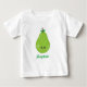 Una camiseta de diseño con una adorable pera sonriente kawaii y un marcador de texto editable para tu nombre en un moderno guión en negrita.