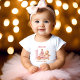 Navidades Primera camiseta de bebé de cumpleaños para una niña presentó a un adorable hombre de jengibre chica, árbol de Navidad, regalo y copos de nieve todo en rosa y beige. Personalizar fácilmente el texto - Kate Eden Art