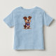 Perro de estilo caricaturesco con una expresión alegre. Este perro tiene un pelaje predominantemente marrón y blanco, con ojos grandes y expresivos y una gran sonrisa que muestra sus dientes. Lleva una colorida bandana alrededor del cuello, predominantemente azul con estrellas, lo que sugiere un tema divertido o festivo. Las orejas del perro están erguidas y su cola está meneándose ligeramente, lo que enfatiza su comportamiento juguetón y amigable. La apariencia general es vibrante e invitante, lo que hace que el perro parezca adorable y accesible.