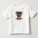 Una camiseta personalizada para niños pequeños con un perro extravagante y lindo con huevos de Pascua en su pelo, personalizada con cualquier nombre.