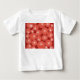 Esta camiseta para bebés tiene un diseño moderno de mediados de siglo de círculos rojos con estallidos blancos en ellos, todo en un campo de ladrillo.