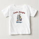 Esta camiseta personalizada para el primer cumpleaños presenta el número "1" representado como una torre de castillo de piedra sólida, completa con almenas, banderas y estandartes que llevan cruces medievales. Un pequeño y lindo caballero armado está listo junto al castillo, sosteniendo una espada y un escudo.