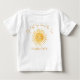 ¿Estás planeando una fiesta de primer cumpleaños de un chica? Esta bonita camiseta para bebés está decorada con un sol sonriente de color amarillo y presenta la frase "Primer viaje alrededor del Sol" en una elegante tipografía de escritura. Personalizable fácil con el nombre del chica de cumpleaños. Acuarela original © Michele Davies.