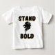 Esta camiseta para bebés tiene un diseño que muestra las palabras "Stand Bold" en un tipo de letra negrita con letra negra sobre una sombra de color dorado con un ícono de cabeza de león negro y dorado en el centro en este tema de cita de la biblia basado en la fe. Este equipo es cómodo, casual y de tamaño estándar, fabricado con algodón de anillo de 4,5 oz 100% peinado, con el fondo cosido de doble aguja y mangas para mayor durabilidad con una etiqueta de lágrima fácil.