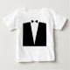 Este enterizo bebé presenta una imagen formal de un esmoquin.