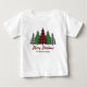 Esta personalizado camiseta de bebé de vacaciones rústicas presenta la moda de las mantas rojas y árboles verdes de Navidad encima de tu mensaje Feliz Navidad. Un bonito look personalizado y tradicional que está de nuevo en el estilo, esta fiesta para los bebés es perfecta para una reunión familiar. Diseño clásico y nostálgico.