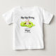 Haz que el primer cumpleaños de tu conejito sea aún más especial con esta adorable camiseta de invitado de honor. Con un lindo conejo asomándose desde un agujero en un parche de hierba, este dulce diseño en azul pastel es perfecto para una celebración primaveral o con tema de conejitos. El alegre texto "Hop Hop Hooray" da la bienvenida a los invitados, mientras que "Nuestro conejito [Nombre] cumple uno" en una fuente de letra suave y manuscrita añade un toque personal. La parte trasera presenta huellas de conejo juguetonas y espacio para detalles adicionales. Personaliza fácilmente todo el texto para que sea perfecto para tu celebración.