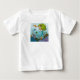 Un encantador dibujo infantil de una sirena pequeña nadando alegremente en el océano junto a delfines amistosos.