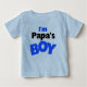 Soy camisetas de Papá's Boy, tés de manga larga, trajes de ropa que incluyen trajes orgánicos para el cuerpo, y trajes de fútbol, gorras, enterizos, camisetas oscuras, camisetas raglan y otras prendas con un brillante diseño de texto azul y negro que dice ¡Soy el chico de papá!