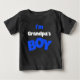 Soy la camiseta negra del abuelo, sudaderas de lana, tés de manga larga, trajes para el fútbol y patatas para el nieto que es el muchacho del abuelo con un diseño de texto blanco y azul.