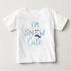 Frase "Soy lindo nevando" en azul invernal con un hombre de nieve en lugar de "o" en la palabra "nieve". El muñeco de nieve tiene una bufanda azul oscuro, una nariz de zanahoria con ojos y boca naranjas y negros. La palabra "lindo" está en cursiva y las otras palabras están impresas con nieve en la parte superior y el fondo de las palabras. Podría ser usado en Navidades y todo el invierno.