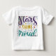 El diseño de la camiseta muestra el texto "Stars Shine Proud" en una fuente alegre y colorida, rodeada de doodles y estrellas extravagantes. El diseño es vibrante y llamativo, y el divertido tipo de letra añade un toque de fantasía.