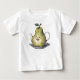Camiseta de bebé con tetera de pera sonriente. Una tetera de pera con unas manos y piernas lindas sonrió brillantemente sobre un plato, grandes semillas por su boca como botones de bonito.